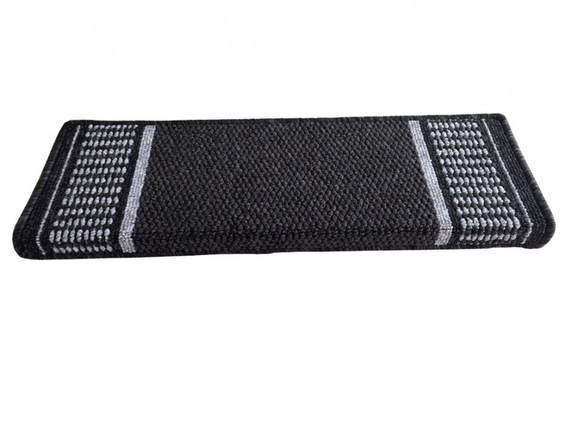 Obdélníkové nášlapy na schody Promenade. Vlas konstrukce boucle, dobře se udržuje. Všechny nášlapy jsou opatřeny lepící zpevňovací lištou a kobercovou páskou, která slouží k upevnění nášlapu na schod.